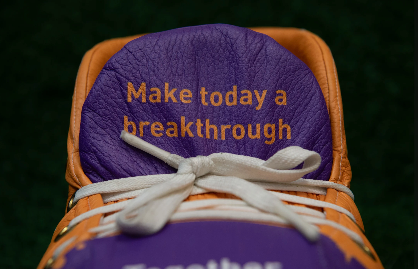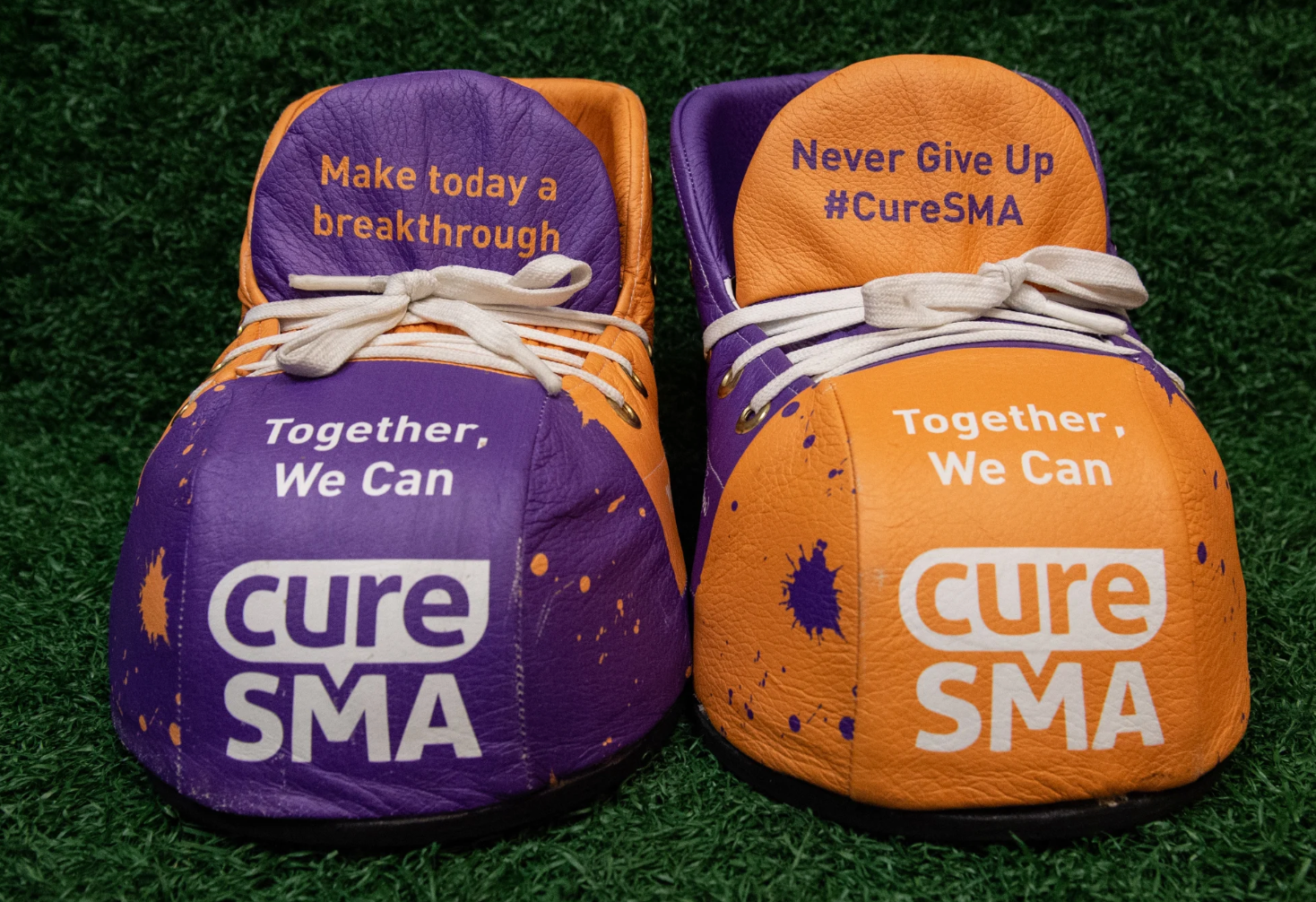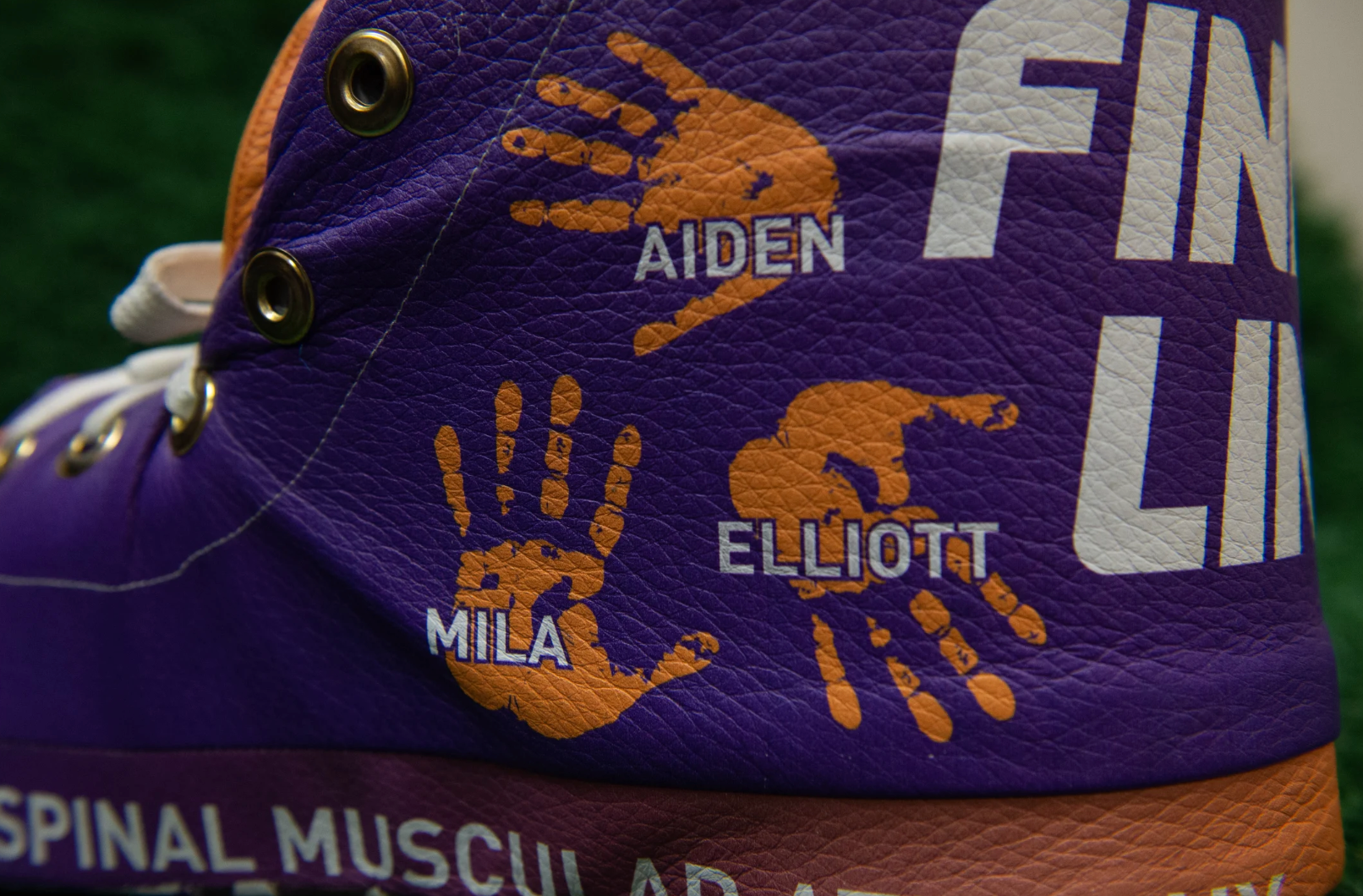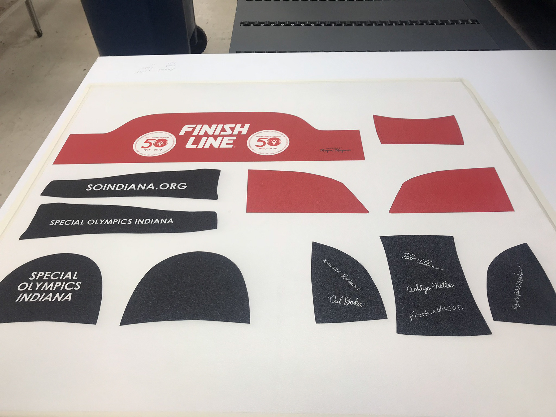 Indianapolis Colts mascot Blue wanted a different pair of “kicks” for each month of the 2018 season to highlight causes and organizations him and his team wanted to raise awareness for. These are the cleats for the first three months: July - Special Olympics Indiana, August - Cure SMA, and September - Colts 35th Season Celebration and the Heart Behind the Horseshoe. Worked closely with the shoe designer for templates and the printer for materials and quality control.